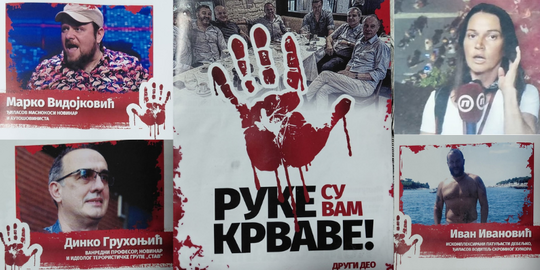 بر روی این برگهها که عکس روزنامهنگاران مارکو ویدویکوویچ، دینکو گروهونیچ، ایوان ایوانوویچ و سانیا ایگنیاتوویچ اکر چاپ شده، آنان به داشتن «دستهای خونین» و سازماندهی «انقلاب رنگی» متهم شدهاند. این تهدیدها نتیجه روایتهای ساختگی است که ماهها توسط مقامات عمومی از جمله الکساندر ووچیچ، رئیسجمهور صربستان، منتشر و توسط رسانههای طرفدار دولت تقویت شده است. یک روز پس از این حادثه، دو روزنامهنگار نیز تهدیدهای آنلاین دریافت کردند. فدراسیونهای بینالمللی بر ضرورت اتخاذ اقدامات حفاظتی فوری و پایان دادن به فرهنگ مصونیت از مجازات تأکید کردهاند.