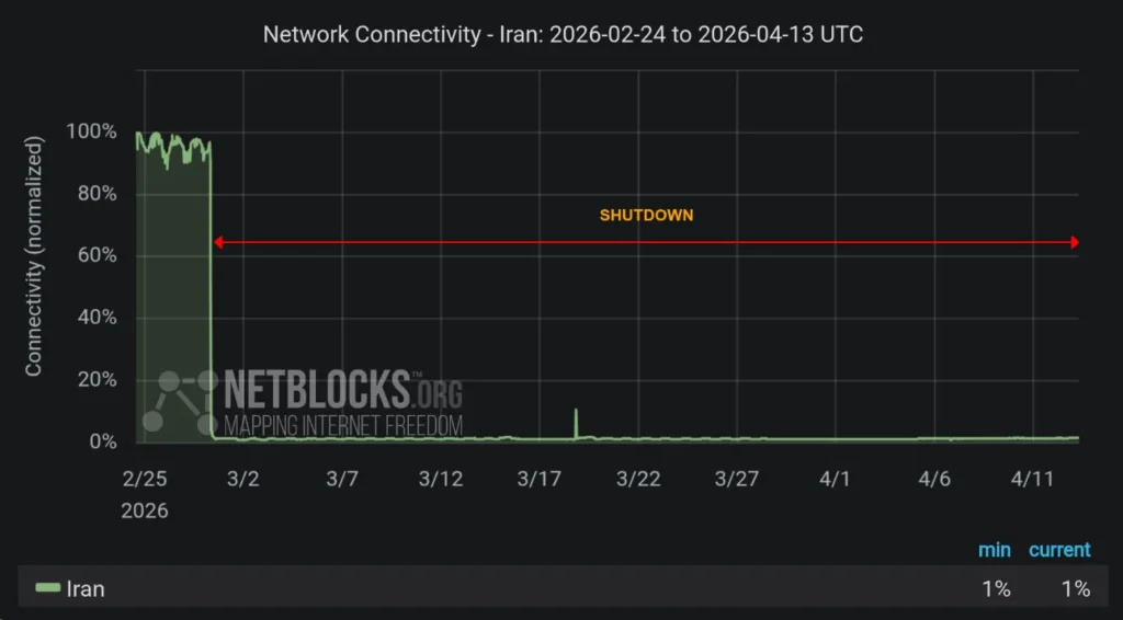 بر اساس این گزارش، اختلال در اینترنت ایران حدود ۴۵ روز ادامه داشته و در این مدت مجموعاً بیش از ۱۰۵۰ ساعت با قطعی کامل یا اختلال شدید همراه بوده است.
